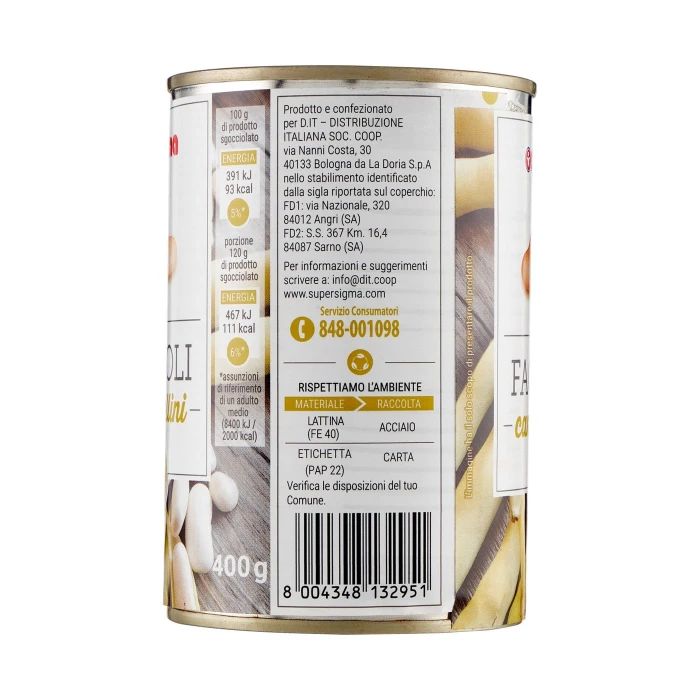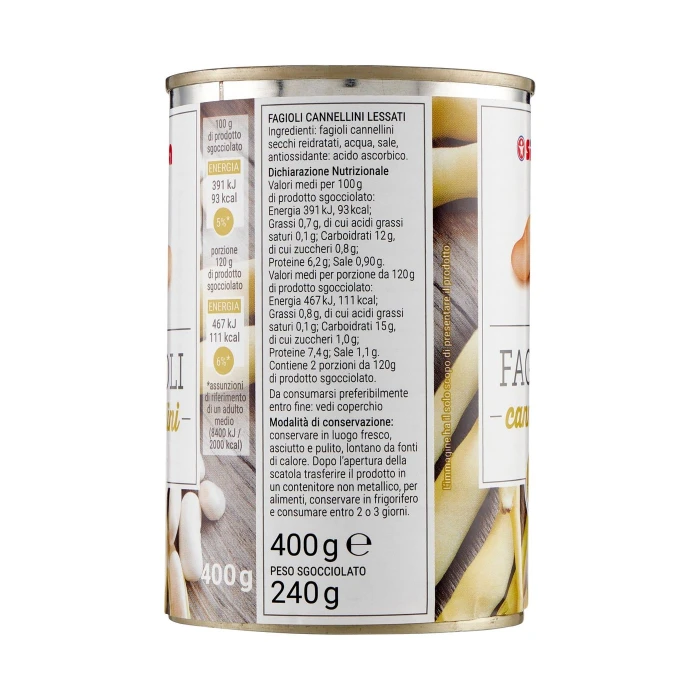 Fagioli cannellini secchi reidratati, Acqua, Sale, Antiossidante: acido ascorbico