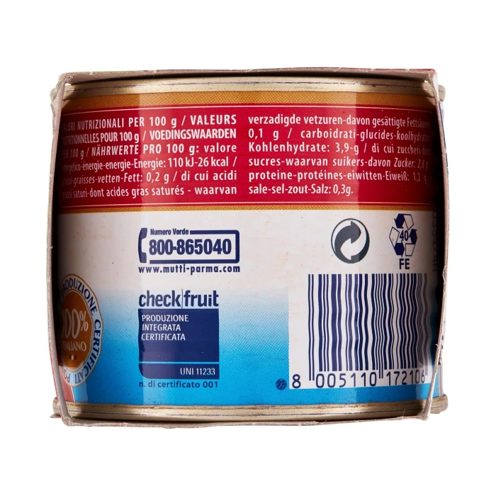 Per 100 g di prodotto - Valori nutrizionali per 100 g:: energia:: 110 kJ-26 kcal, grassi:: 0,2 g, di cui acidi grassi saturi:: 0,1 g, carboidrati:: 3,9 g, di cui zuccheri:: 2,8 g, proteine:: 1,2 g, sale:: 0,3 g